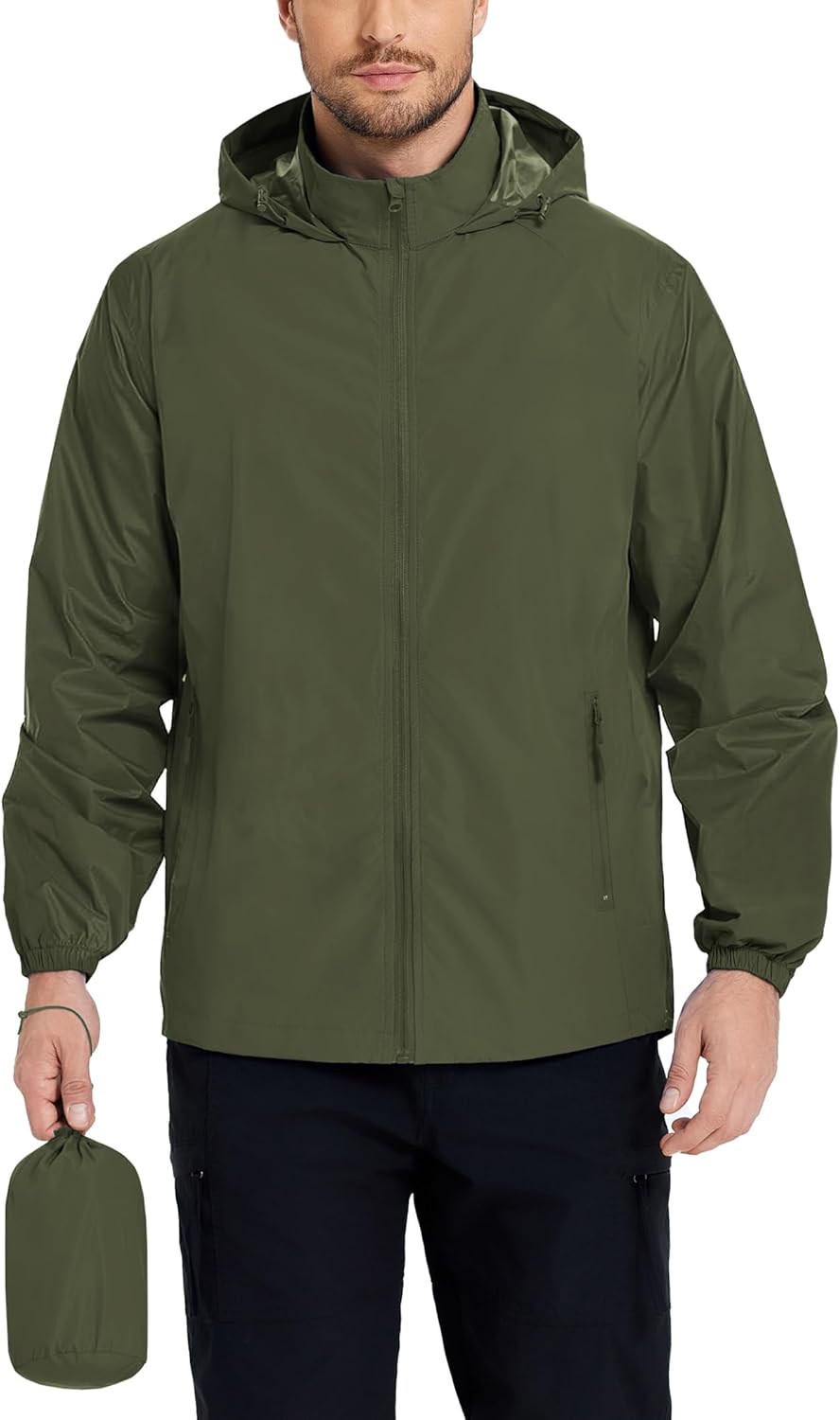 Mens Rain Jacket Lightweight Waterproof Raincoat Packable Rain Shell Jacket With Hood Golf Hiking Windbreaker